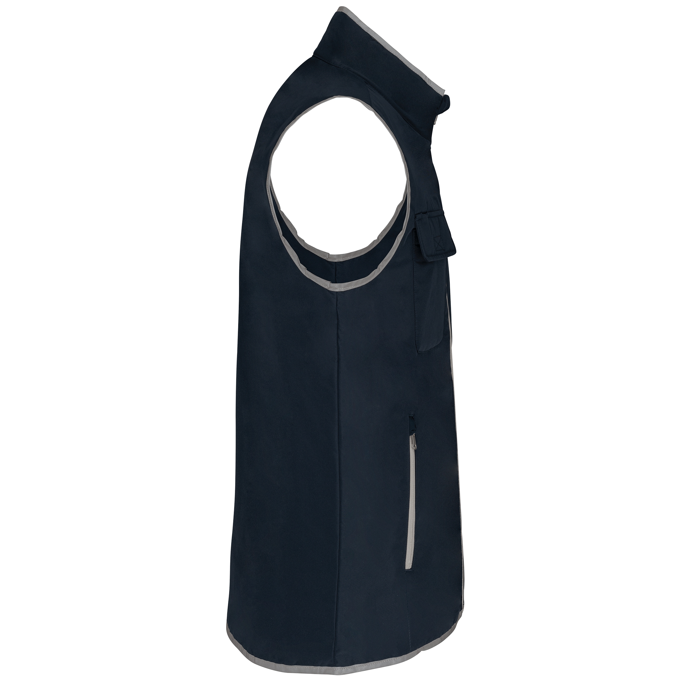 100% polyester. 4 lagen: buitenkant in taf 240T. Polyfil 60 g. Membraan in zilverkleurig PU aan de binnenkant. Technische prestaties: waterdicht 5000 mm en winddicht 5000. Thermische weerstand (norm ISO 11092-2014) RCT: 0.138 m² k/w. Rechte snit. Nylon ritssluiting. 2 ritszakken aan de zijkanten. 1 borstzakje met klep en penzakje, verstevigde naden en klittenbandsluiting. Zilverkleurige bies aan de hals, de mouwuiteinden en de onderkant. 2 grote binnenzakken onderaan. Naametiket aan de binnenkant. Ophanglint in de kraag. Verlengd achterpand. Tear-away merklabel voor eenvoudige personalisatie.