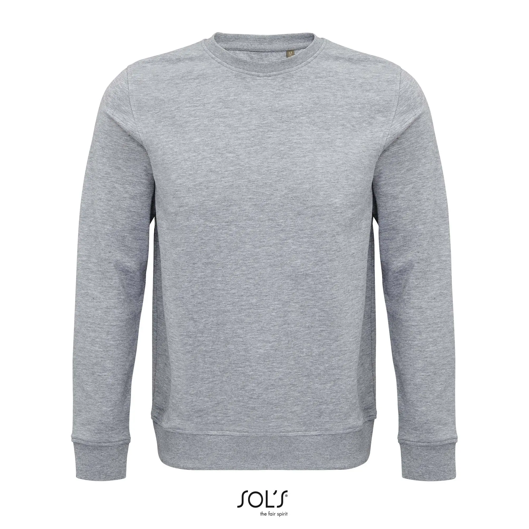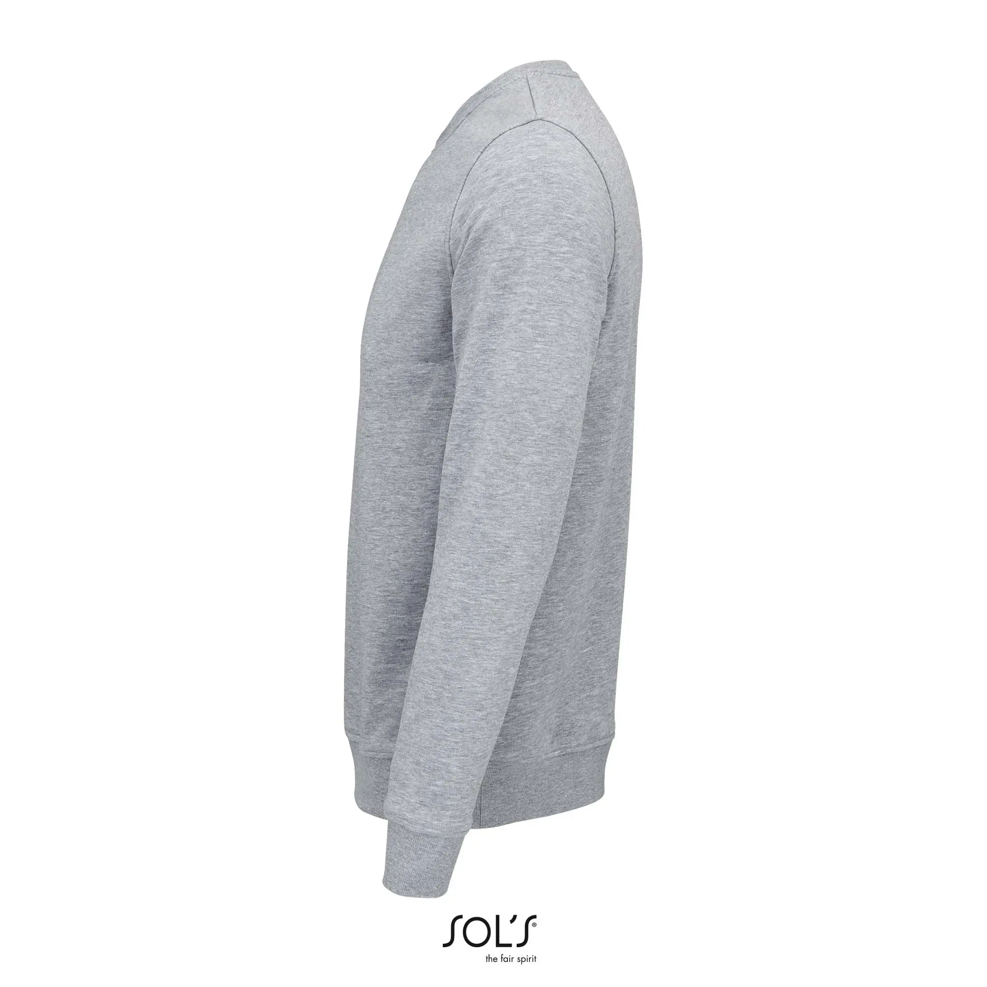 – French Terry 280– 80% biologisch katoen / 20% gerecycleerd polyester– 3 draden– unbrushed– Buitenkant en ribstructuur 100% katoen– Terry organic sweatshirt– Zijnaad– Halve-maanvorm in hals– Versterkingsband met visgraatmotief in de hals– Ingezette mouwen– 2×2 geribde manchetten, kraag en zoom– Geen label– Strijken toegelaten– 40 °C wasbaar– Ronde hals– Zonder label– Binnen niet geruwd– Zijnaden