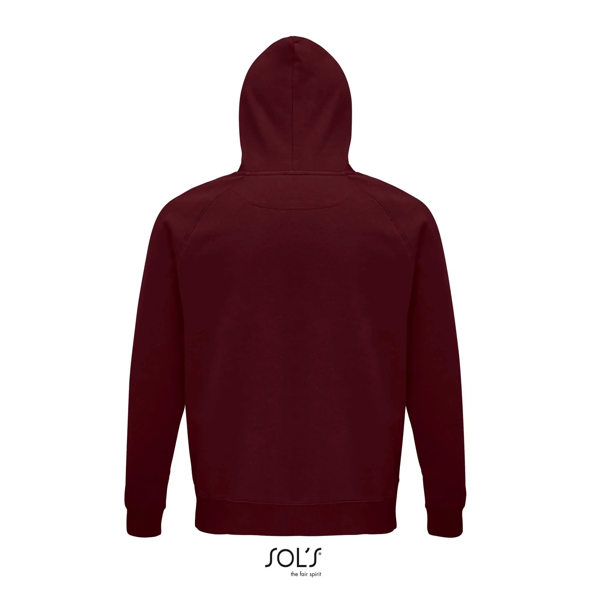 – Fleece 280– 80% biologisch katoen / 20% gerecycleerd polyester– 3 draden– Binnenzijde opgeruwd– Buitenkant: 100% katoen, ribben: 97% biologisch katoen / 3% elastaan– Biohoodie– Zijnaad– Gekruiste hals– Kangoeroezakje– Raglanmouwen– Halve-maanvorm in hals– Katoenen nektape– 2×2 geribde manchetten en zoom– Zilveren oogjes en stoppers– Rond ton-sur-ton trekkoord– Geen label– 40 °C wasbaar– Strijken toegelaten– Zonder label– Binnen geruwd– Zijnaden