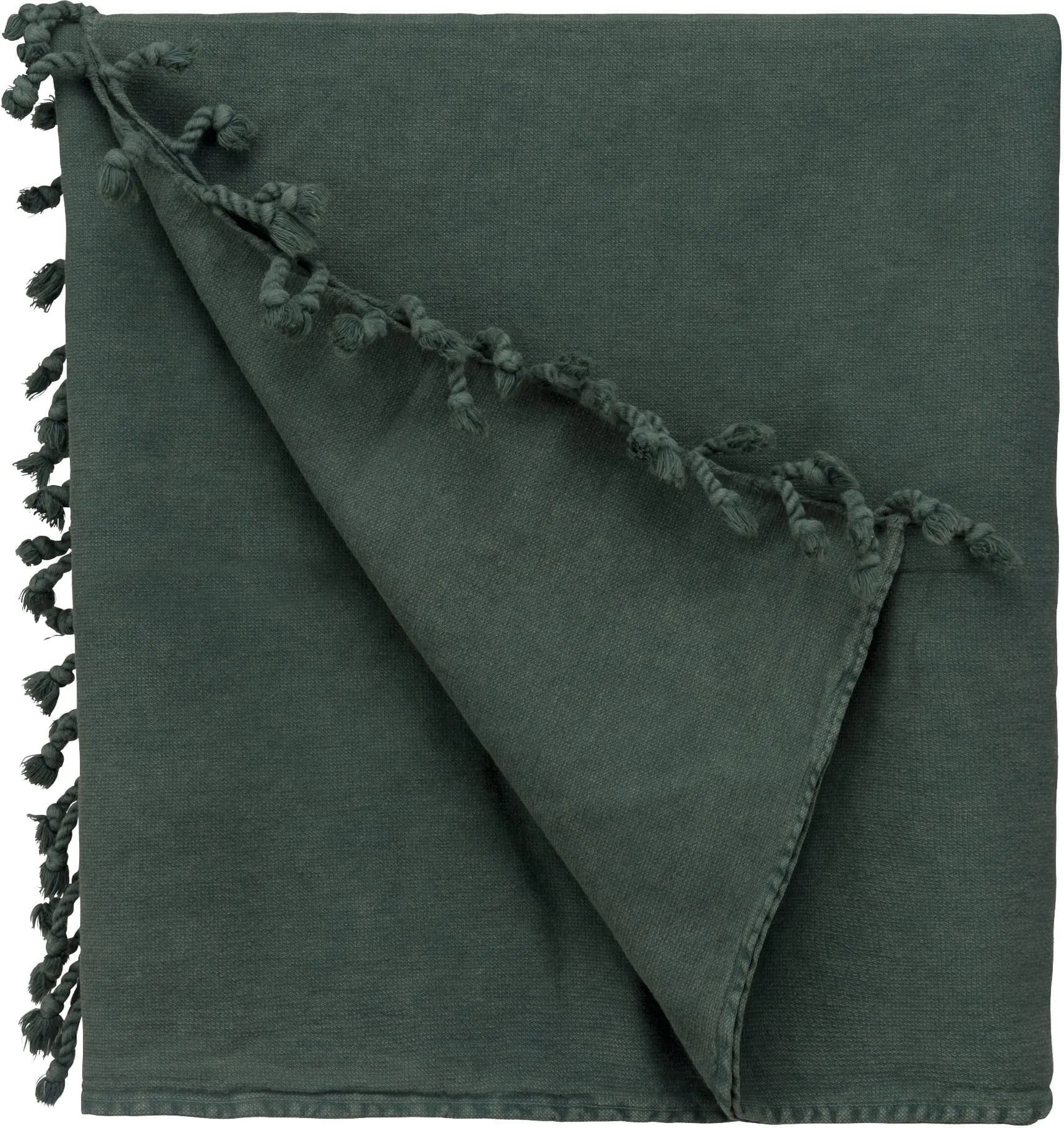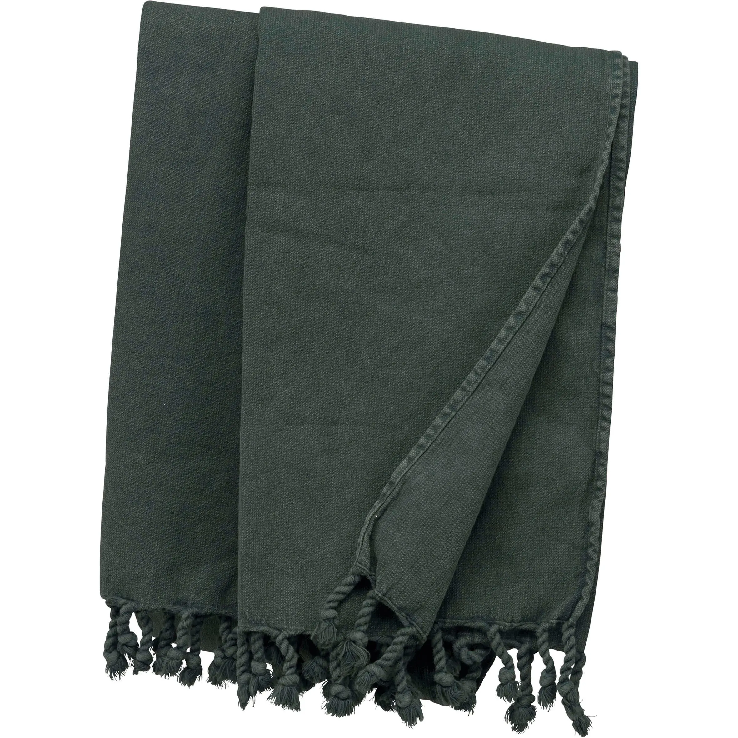 100% katoen. Afmetingen: 165 cm x 90 cm. Verwassen look. Gevlochten franjes met een knoop. Dit product kreeg een speciale behandeling om het er verouderd te laten uitzien. Dit ambachtelijke procedé maakt dat er kleurverschillen zijn tussen de producten, waardoor elk stuk uniek is. Gecertificeerd STANDARD 100 by OEKO-TEX®N° CQ1007/6, IFTH.