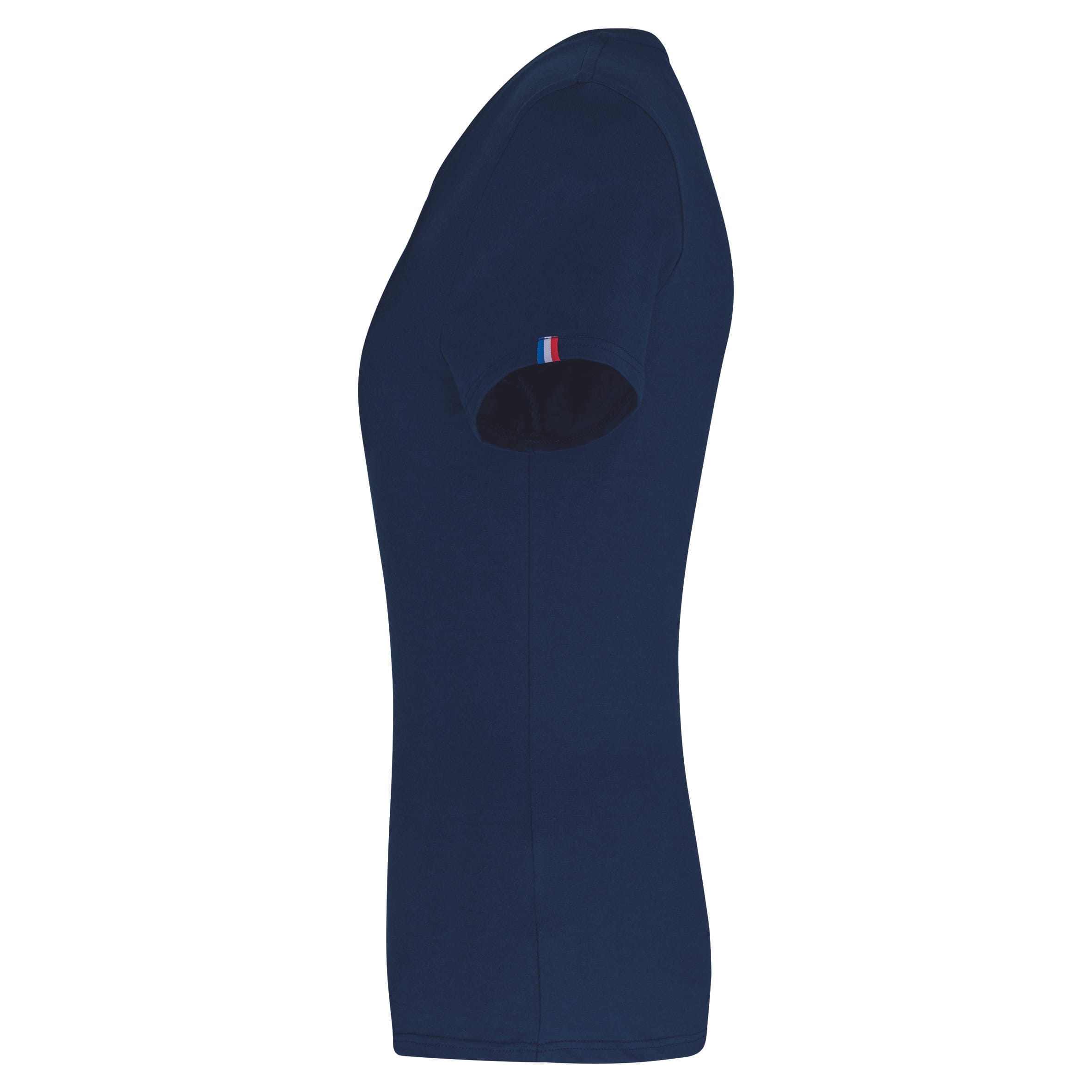 100% katoen. Dit t-shirt is gemaakt van 100% biologisch gekamd katoen. Label “Origine France Garantie”. Zijnaden. Ronde hals in rib. Toon op toon nektape in de kraag (doorlopend nek – schouder). Blue/White/Red clip label linksonderaan wanneer het item gedragen wordt. Afgewerkt met dubbele stiksels. Verpakking 100% recyclebaar.
