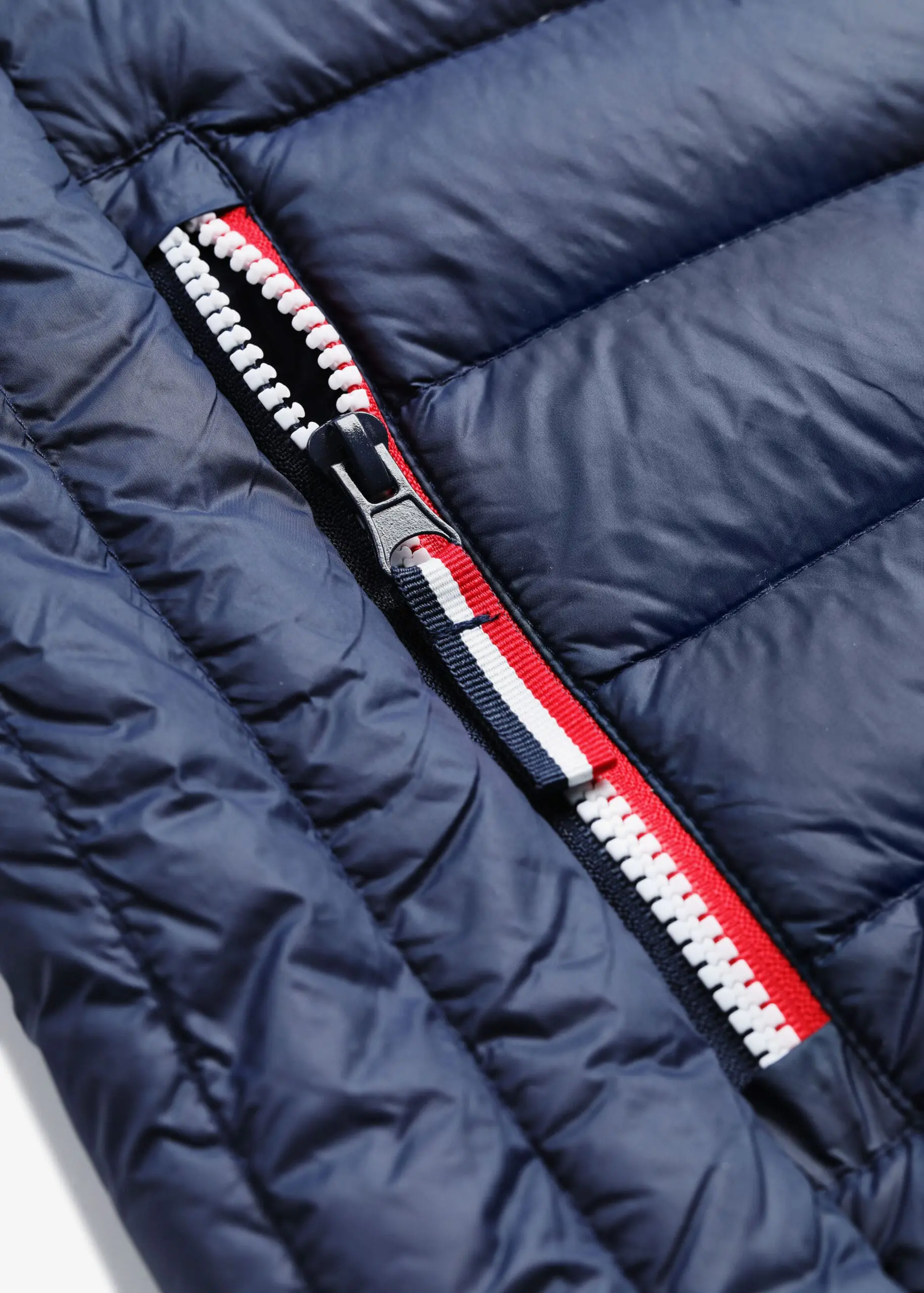 – Nylon 380T; Buitenkant en voering: 100% Polyamide; Vulling: 90% Dons / 10% Veren– Sluiting met rits– 2 voorzakken met rits– 2 binnenzakken– Drie kleuren details– “In bag” vouwsysteem met stoppers– Geen label– Handwas– Zonder label